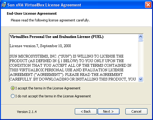NOTA: La última versión de "VirtualBox" disponible en la web en el momento de desarrollar este material era la versión 2.1.4, aunque presumiblemente en el momento en el cual el lector visite la página web referenciada, esté disponible una versión más avanzada, si bien en nuestro caso utilizaremos la versión reseñada para aplicar los contenidos de la documentación, al ser la que hemos testeado, instalado, configurado y documentado convenientemente.
