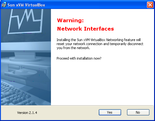 A continuación el asistente de instalación nos avisa de que los interfaces de red de nuestro equipo quedaran temporalmente desconectados de la red durante el proceso de instalación, lo cual no supone problema alguno para nosotros en este instante, por lo cual pulsaremos en la ventana de la imagen inferior sobre el botón "Yes" para proceder con el proceso de instalación.