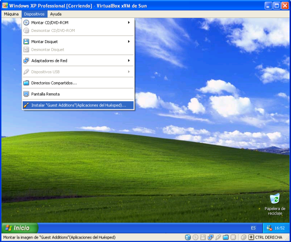 NOTA: Si la instalación de Windows XP Professional la hemos llevado a cabo en un equipo físico en vez de en una máquina virtual, podremos obviar este apartado correspondiente a la instalación de las aplicaciones del huésped en el equipo "Windows XP Professional".