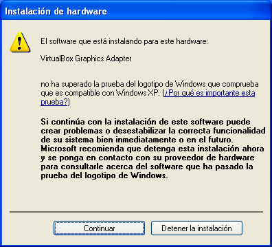 Llegados a este punto podremos dar por concluido el proceso de instalación de las aplicaciones de huésped VirtualBox en el equipo en el equipo "Windows XP Professional".