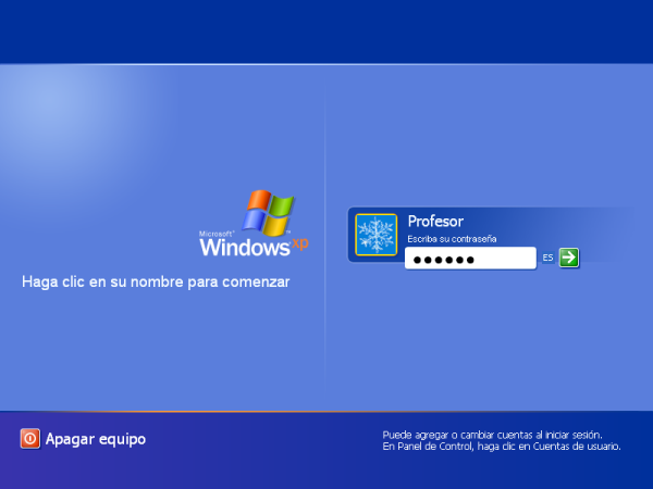 Una vez que el equipo haya sido reiniciado, nos autenticaremos en el mismo con las credenciales del usuario "Profesor", y tras ello procederemos a eliminar del Escritorio del equipo el fichero "sp1aexpress_es.exe", de instalación del SP1 de Windows XP.