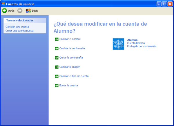 Finalmente quedará asociada la contraseña para el usuario "Alumno", tal y como vemos en la ventana de la imagen siguiente.