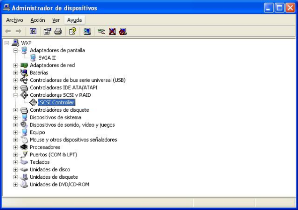 De igual modo procederemos para configurar cualquier otro dispositivo, tal es el caso de la "Controladora de vídeo (Compatible VGA)" que el sistema no había podido configurar adecuadamente, y que finalmente quedará instalada en "Adaptadores de pantalla" como "SVGA II", tal y como vemos en la imagen inferior.