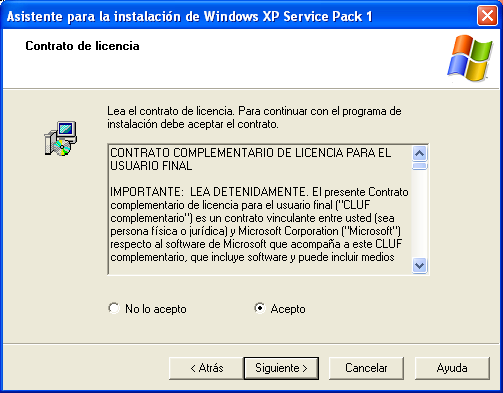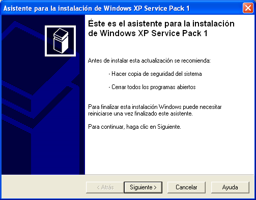 NOTA: Si el CD de Windows XP Professional a partir del cual hemos realizado la instalación del equipo, ya incluía al menos el SP1 de Windows XP Professional, obviaremos todo este proceso de instalación del SP1 de Windows XP Professional.