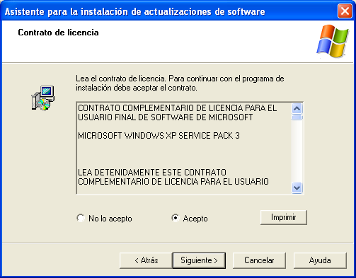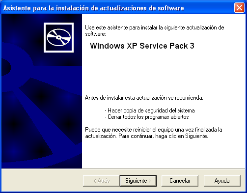 NOTA: Si el CD de Windows XP Professional a partir del cual hemos realizado la instalación del equipo, ya incluía el SP3 de Windows XP Professional, evidentemente obviaremos todo este proceso de instalación del SP3 de Windows XP Professional.