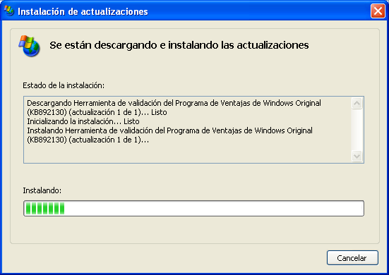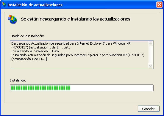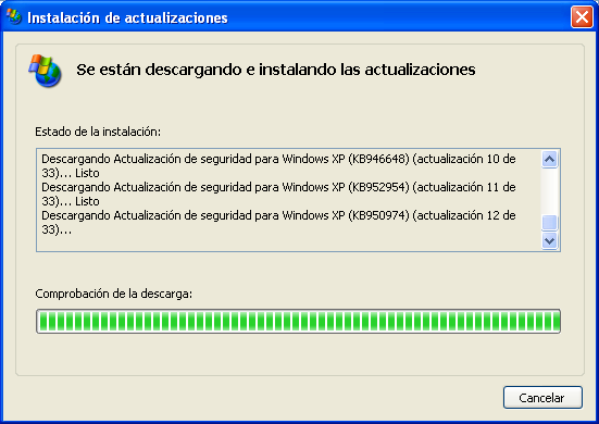 En ese instante dará comienzo el proceso de descarga e instalación de los parches correspondientes en nuestro equipo.