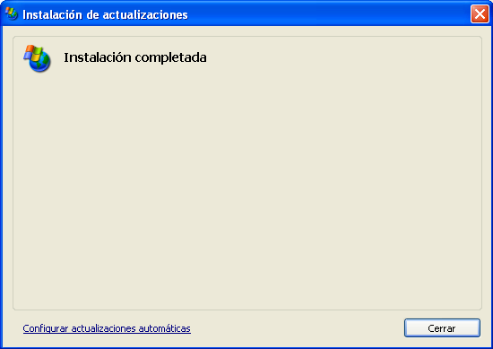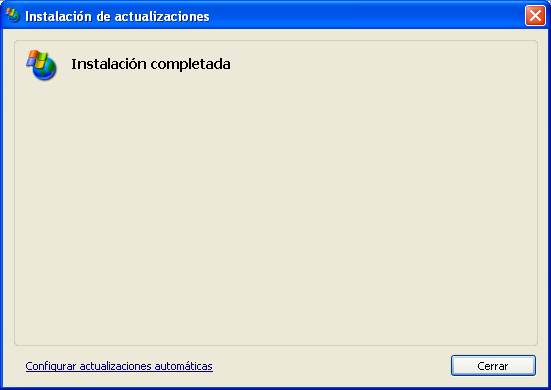 Una vez completada la actualización correspondiente, será mostrada la siguiente ventana, en la cual pulsaremos directamente sobre el botón "Cerrar".