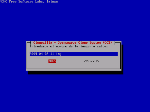En la siguiente ventana deberemos indicar el nombre con el cual será almacenada la imagen que vamos a crear, dejando en nuestro caso el nombre propuesto por el asistente de creación de imagen de CloneZilla, y pulsando en la ventana de la imagen inferior directamente sobre la tecla "Enter".