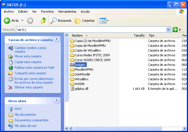 NOTA: Si estamos utilizando máquinas virtuales, podremos crear la carpeta "Imagen" indicada anteriormente en el equipo anfitrión donde tengamos instalada la aplicación VirtualBox.