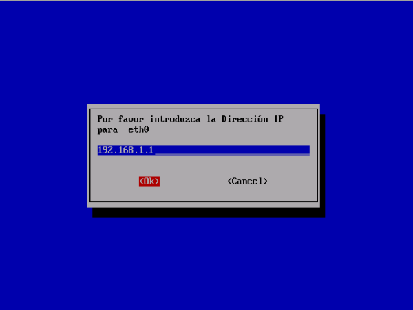 Tras ello deberemos especificar en la siguiente ventana la dirección de la puerta de enlace de nuestra red, en nuestro caso "192.168.1.254", si bien en nuestro caso NO precisamos de la puerta de enlace para descargar la imagen desde la unidad SAMBA compartida mediante la carpeta "Imagen".