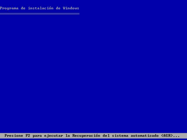 Cuando el equipo se inicia con el CD de Windows XP Professional, comienza de forma automática la instalación de dicho sistema operativo en el disco duro de dicho equipo, tal y como se muestra en la siguiente ventana.