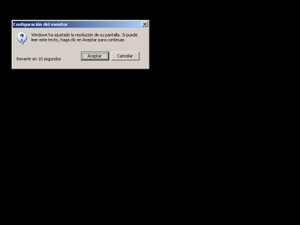 El sistema ajustará la pantalla a las características del monitor y de la tarjeta gráfica para obtener el máximo rendimiento; si somos capaces a ver correctamente el mensaje mostrado en la ventana de la imagen inferior, pulsaremos sobre el botón "Aceptar".