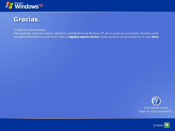 Así pues llegados a este punto ya habremos completado satisfactoriamente el proceso de instalación de Windows XP Professional en el equipo correspondiente, momento en el cual procederemos a retirar el CD de dicho producto de la unidad de CD/DVD del equipo.