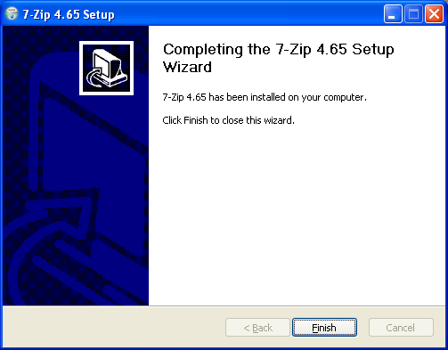 Una vez completado el proceso de instalación de la aplicación "7-Zip", pasará a ser mostrada la siguiente ventana, en la que pulsaremos directamente sobre el botón "Finish" para dar por concluido el proceso de instalación de la aplicación en el equipo.