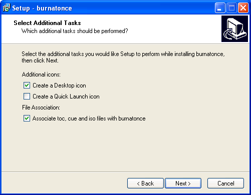 A continuación especificaremos los iconos adicionales que deseamos sean creados para el acceso a la aplicación, así como los ficheros de imagen con los cuales será asociada la misma, dando por válidas en nuestro caso todas las configuraciones propuestas por defecto por el asistente, y pulsando en ella directamente sobre el botón "Next".