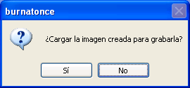 Una vez que el proceso se haya completado satisfactoriamente se mostrará la siguiente ventana, en la que se nos preguntará si deseamos grabar la imagen ISO creada, opción que declinaremos pulsando sobre el botón "No" para proceder a su cierre.
