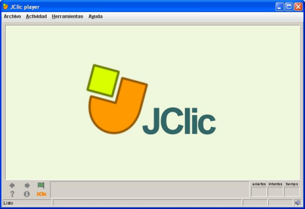 Ahora sí que finalmente se nos mostrará la ventana principal de la aplicación JClic, tal y como vemos en la siguiente imagen.