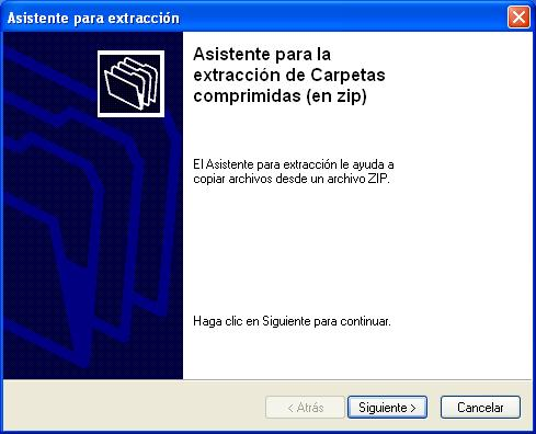 Una vez que tengamos disponible en el Escritorio de nuestro equipo el fichero "demo.jclic.zip", pulsaremos sobre el mismo con el botón derecho del ratón para elegir la opción "Extraer todo" en el desplegable correspondiente, pasando a ser mostrada la siguiente ventana como resultado de dicha acción, en la que pulsaremos directamente sobre el botón "Siguiente >".