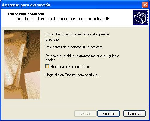 El proceso de instalación se completará en breves instantes, tras los cuales se nos mostrará la siguiente ventana, en la que pulsaremos sobre el botón "Terminar" para dar por concluido el proceso de instalación de la aplicación JClic.
