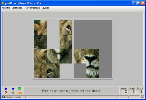 Iremos pulsando en la ventana de la imagen superior hasta llegar al apartado de "Puzzles", donde podremos trabajar con la reconstrucción de diversos puzzles, tal y como vemos en la ventana de la imagen inferior.
