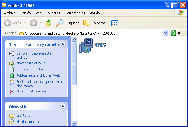 Completaremos este apartado eliminando el fichero de instalación "wink20-1060.zip" y la carpeta "wink20-1060" resultante de la descompresión de dicho fichero, del Escritorio de nuestro equipo.