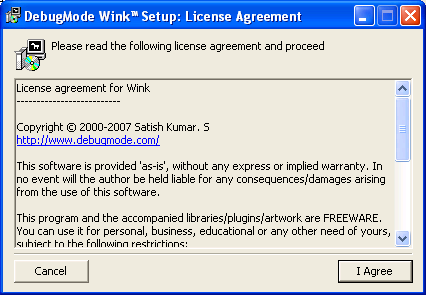 En el momento de elaborar este apartado existía en la red la posibilidad de descargar de modo gratuito una versión del capturador de pantallas Wink para Windows y Linux desde la URL "http://www.debugmode.com/wink/download.php", concretamente para Windows la última versión disponible era "Wink 2.0", versión que procederemos a instalar en este apartado.