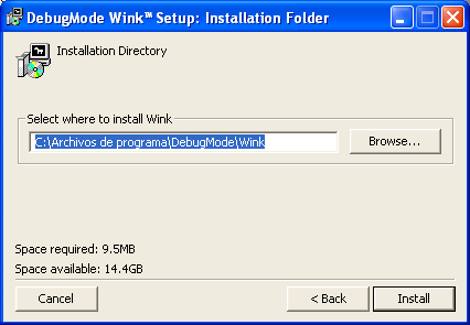 Dará pues comienzo en este instante la instalación de la aplicación Wink en el equipo cliente, proceso que se completará en breves instantes.