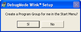 Durante el proceso de instalación de la aplicación se nos presentará la siguiente ventana, que nos preguntará si deseamos crear un nuevo grupo de programas para esta aplicación en el menú de inicio, pregunta a la que responderemos afirmativamente pulsando sobre el botón "Sí" en la ventana de la imagen inferior.