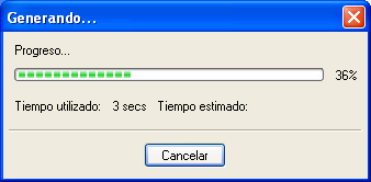 Dará comienzo en este instante la generación del fichero reseñado en la ventana de la imagen anterior, proceso que se cumplimentará transcurridos unos breves instantes.