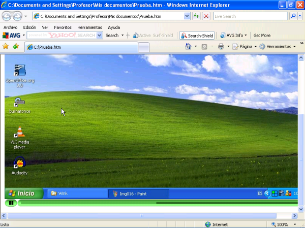 NOTA: A partir de este instante, si deseáramos volver a visualizar en otro momento dicho vídeo, haríamos doble clic sobre el fichero "C:\Prueba.html", pasando a reproducirse en el navegador del equipo la secuencia de vídeo con las operaciones y movimientos que llevamos a cabo en su momento.