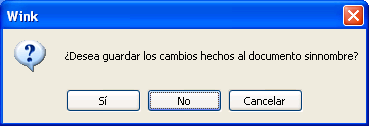 Llegados a este punto podremos cerrar la aplicación "Wink", momento en el que se nos preguntará si deseamos salvar los cambios realizados al proyecto de "Wink" con el cual hemos trabajado; dado que en este caso como la captura realizada tan sólo era una prueba, declinaremos almacenar los cambios realizados pulsando sobre el botón "No" en la ventana siguiente.