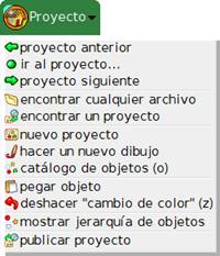 Proyectos: Llamamos proyectos a cada uno de nuestros trabajos en Squeak. Los proyectos se guardan mediante la opción publicar proyecto de este menú y tienen como extensión .pr