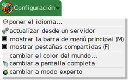 El menú Configuración nos ofrece las posibilidades de cambiar de idioma el programa, actualizarlo desde el servidor, cambiar el modo de presentación en pantalla (normal o pantalla completa), cambiar el volumen, establecer preferencias de aspecto o cambiar a modo experto.