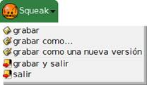 El menú Squeak añade la opción guardar como una nueva versión, que guarda el estado de Squeak en disco como una versión que lleva por nombre el día de la fecha, según puede observarse en la figura.