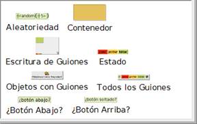 Escenario compuesto de un campo de juegos, un juego de botones de control de guiones, un cubo de basura y el propio marco destinado a la incorporación de objetos y elaboración de guiones. |