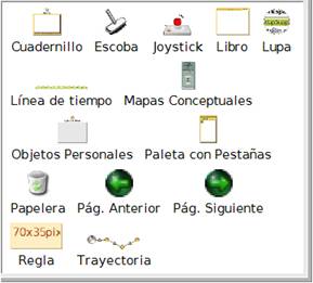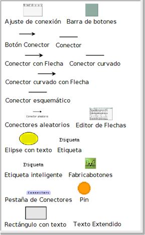 Paleta de botones, líneas y flechas para elaborar mapas conceptuales. |