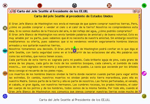 Al liberar el botón del ratón, el objeto de texto se incorporará al Mundo. Como cualquier objeto se puede modificar su aspecto e, incluso, se puede modificar el texto que incluye como en el procesador de textos.