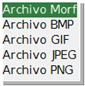 Las opciones de formato gráfico disponibles son los formatos bmp, gif, jpeg y png.