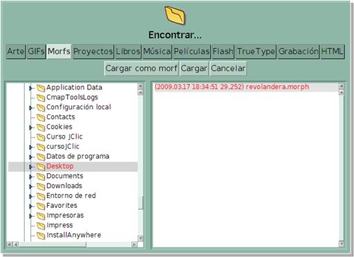 Por defecto, los Morphs se almacenarán en el directorio de instalación de Squeak y se identifican por poseer como extensión *.morph.