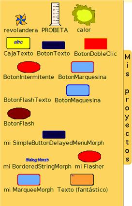 Pero, además, Squeak permite exportar objetos de sus proyectos para su re-utilización en otro proyectos en los mismo tipos de formato bmp, gif, jpeg, png y, además, como morphs (o morfs).