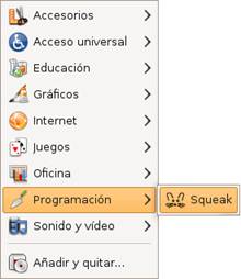 Al término de la instalación, en el menú Aplicaciones de Linux Ubuntu podremos comprobar que se han creado dos nuevas entradas en Educación y Programación que dan acceso a Squeak.