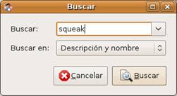 En la ventana emergente escribiremos Squeak y pulsaremos sobre el botón Buscar.