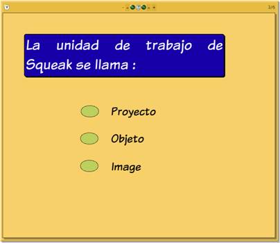 Utilizando el duplicado modificaremos los textos de la pregunta y diferentes alternativas de respuesta de esta nueva página. Después, tan sólo habrá que reordenar las elipses de modo que aquella que contiene el guión de aciertos se coloque delante de la solución correcta.