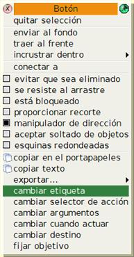 Para cambiar el texto del botón, hacemos clic sobre el botón Menú (rojo) del halo del objeto, seleccionamos la opción cambiar etiqueta.