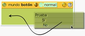 El menú correspondiente al botón Recursos del guión del botón Presióname presenta un nutrido grupo de accesorios disponibles para programar el botón. En este caso, pulsaremos sobre el primero de ellos, la unidad de Prueba Sí/No.