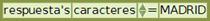 abc es el texto que aparece por defecto en la expresión. Evidentemente, nuestro propósito es comprobar si el texto contenido en el objeto respuesta es MADRID. Para que ésto sea así, pulsaremos sobre el texto abc y lo sustituiremos por MADRID.