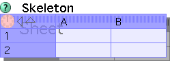 El objeto Skeleton es similar a una hoja de cálculo y resulta muy útil para introducir cálculos complicados en un proyecto Squeak. Lo podemos encontrar en el Catálogo de objetos de Squeak formando una única categoría. Para utilizar Skeleton en nuestros proyectos basta con arrastrar el icono de la hoja de cálculo hasta el mundo de Squeak.