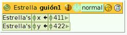 A continuación, desde la categoría básico del objeto estrella, arrastraremos hasta el guión las expresiones que determinan las coordenadas x e y de la estrella en el Mundo.