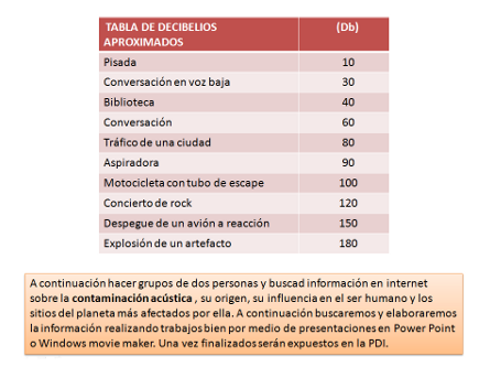 Primera actividad. Visionado de presentación en PDI: "LA CONTAMINACIÓN ACÚSTICA".