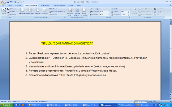 Tarea: "Realizar una presentación del tema: La contaminación Acústica".